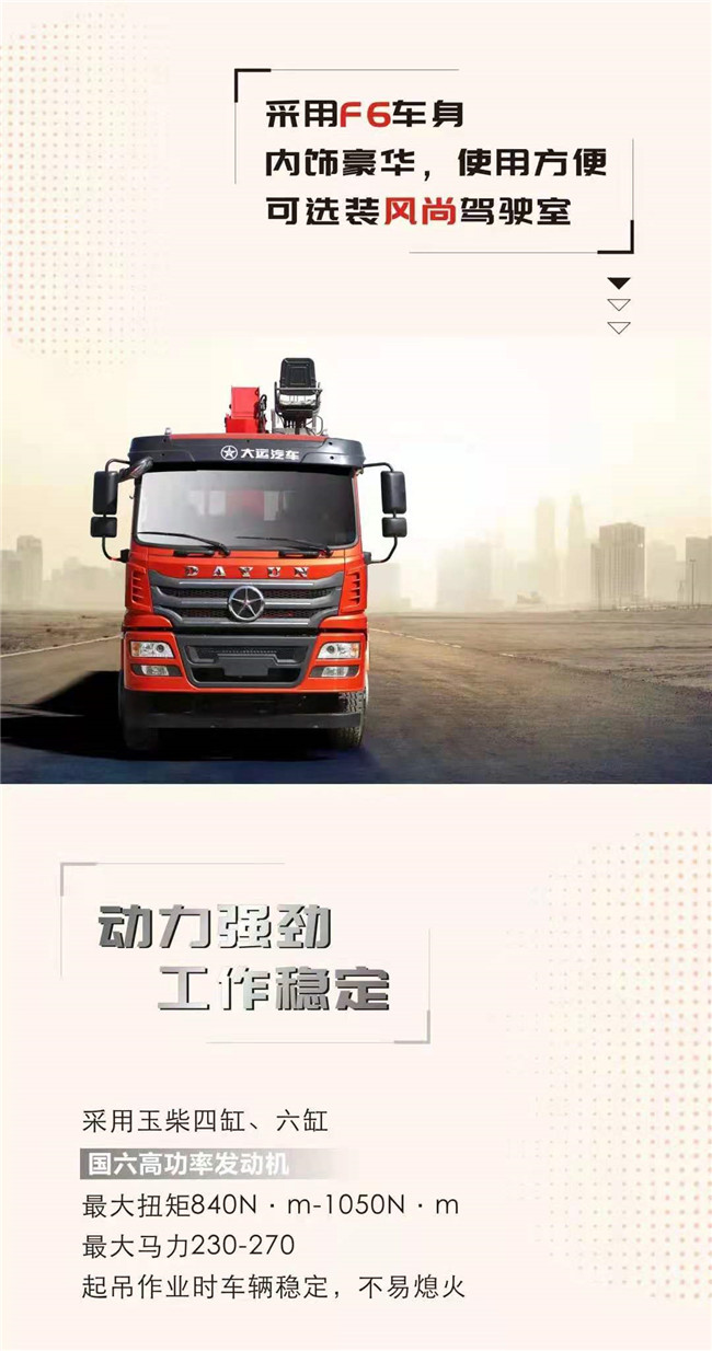 國(guó)六大運(yùn)提升橋隨車吊選12噸五節(jié)臂高度為18.3米