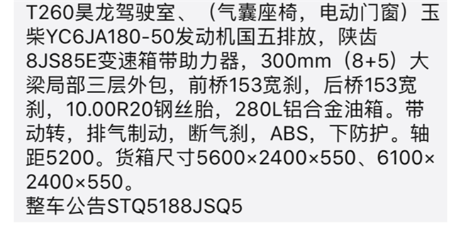 STQ1164L10Y34 隨車吊十通牌STQ5146JSQ4吊集裝箱起重運輸車:車輛參數(shù)道路運輸車輛燃料消耗量達標車型(貨車)車輛參數(shù),這款訪天錦駕駛室,玉柴180套國四合格證,為了用戶上牌,變速箱陜齒八檔,十噸的后橋,900R20鋼絲胎。也可以用160套國四合格證。詳細了解請打圖片上艾經理電話。