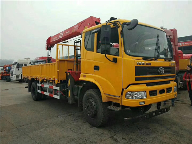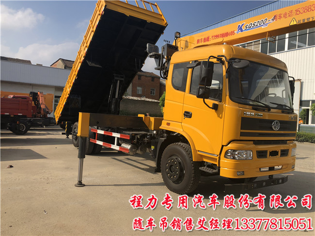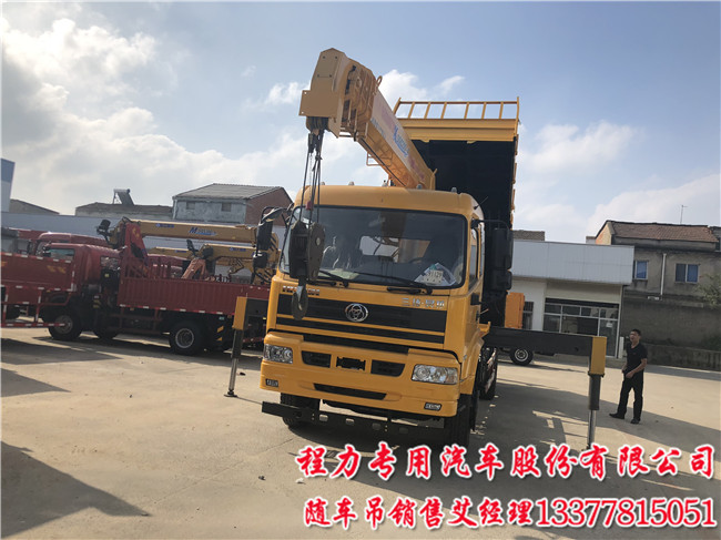 這款十通隨車吊有燃油公告的,也就是說可以辦營運證的,可以配徐工8噸及8噸以下的吊機,所配的吊機噸位不同,整車價格也不同。