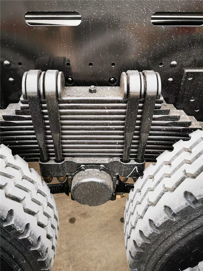 華神國(guó)六T5前四后八隨車(chē)吊:看底盤(pán):后雙橋處的彈簧鋼板。